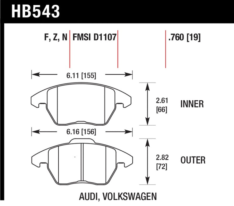 Hawk HB543D.760 06-11 Audi A3 2.0L Base Front ER-1 Brake Pads