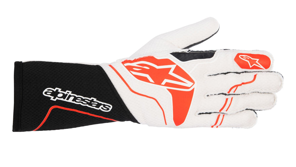 The Alpinestars Tech 1-ZX V3 Racing gloves have been developed with input from leading F1 & Endurance drivers, offering increased protection while significantly improving breathability. The classic Tech-1 ZX pre-curved shape has been improved from previous generations for a better fit and less material bunching when holding the wheel. External stitching provides optimal comfort and feel, except the thumb where internal stitching helps improve feedback on steering wheel controls. The strapless, extended length gauntlet utilizes a 180 degree elastic wrist for a clean appearance and a comfortable, secure fit. Inside the glove, the inner palm is treated with latex to help prevent glove slippage for maximum grip, further aided with the ergonomically placed silicon printing on the outside of the palm. Finally, the index finger and thumb are touch screen compatible for using the latest tech at the track.