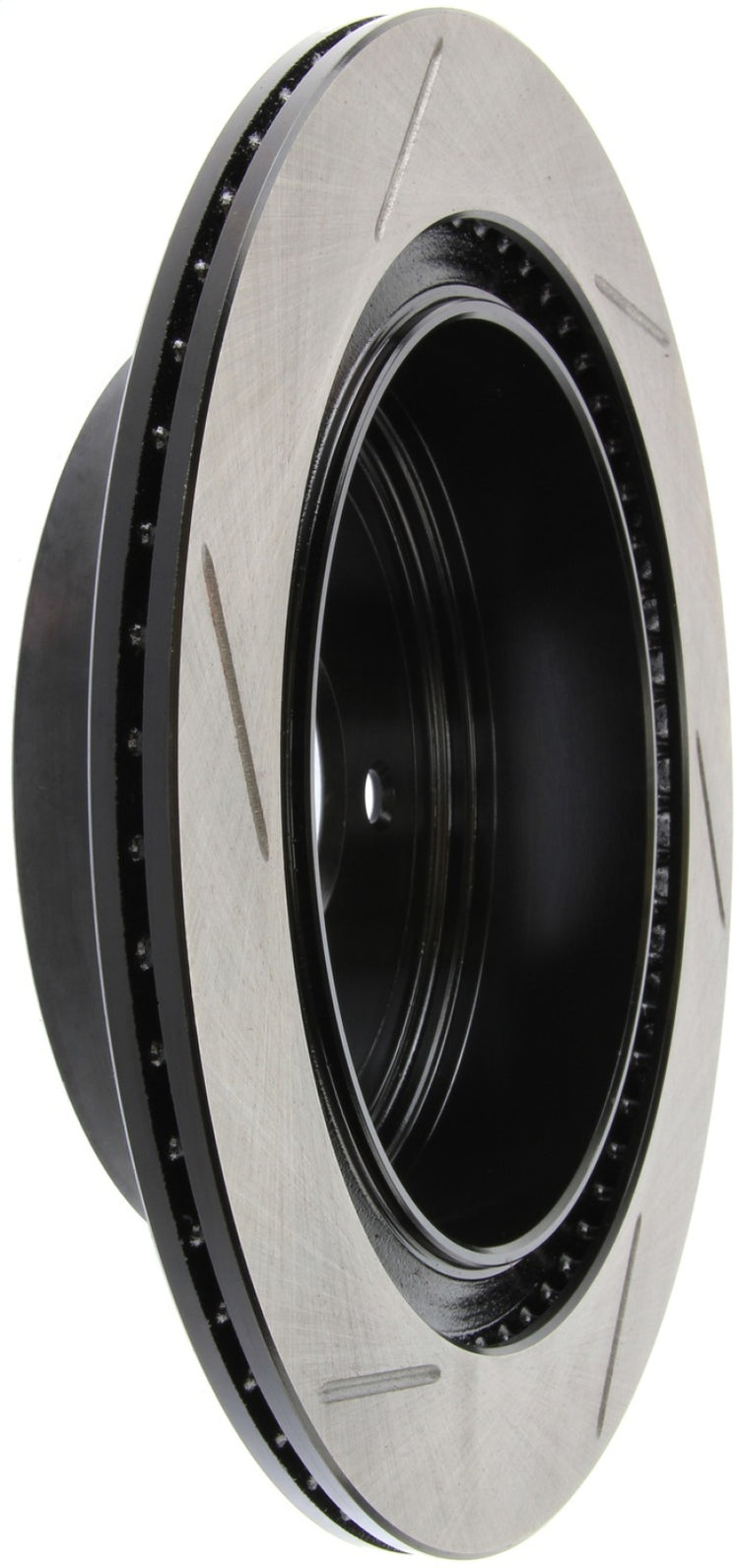 StopTech Slotted Sport Rotors are 1-piece direct replacement brake discs for factory brake systems and stock calipers that look great behind your wheels – and offer significantly improved braking performance. The unique slotting aids with heat and brake dust dispersal; prevents glazing of the pads; adds bite and improves wet and dry braking performance. Built to last; the black e-coating provides protection from corrosion and the high carbon metallurgy (in most applications) offers quieter operation; better crack resistance and increased performance.
