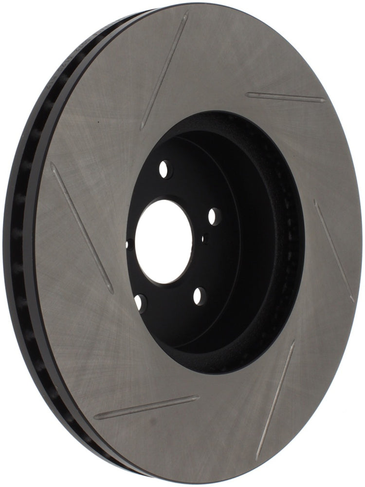 StopTech Slotted Sport Rotors are 1-piece direct replacement brake discs for factory brake systems and stock calipers that look great behind your wheels – and offer significantly improved braking performance. The unique slotting aids with heat and brake dust dispersal; prevents glazing of the pads; adds bite and improves wet and dry braking performance. Built to last; the black e-coating provides protection from corrosion and the high carbon metallurgy (in most applications) offers quieter operation; better crack resistance and increased performance.