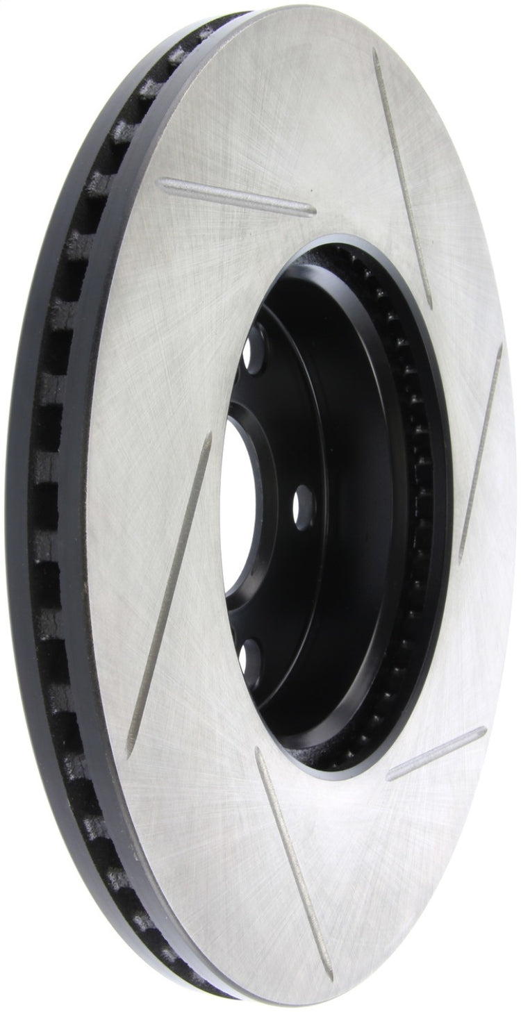 StopTech Slotted Sport Rotors are 1-piece direct replacement brake discs for factory brake systems and stock calipers that look great behind your wheels – and offer significantly improved braking performance. The unique slotting aids with heat and brake dust dispersal; prevents glazing of the pads; adds bite and improves wet and dry braking performance. Built to last; the black e-coating provides protection from corrosion and the high carbon metallurgy (in most applications) offers quieter operation; better crack resistance and increased performance.