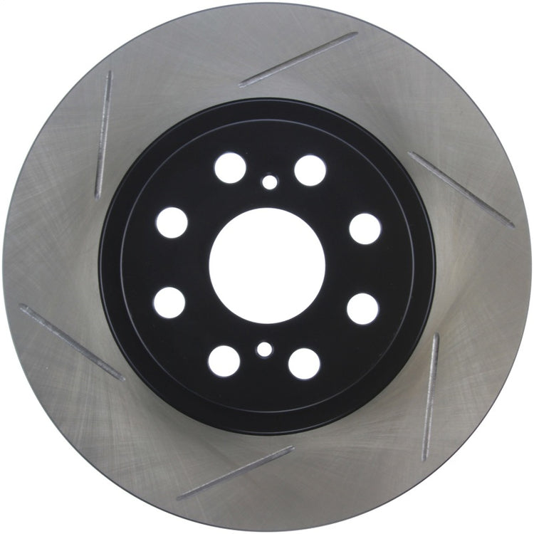 StopTech Slotted Sport Rotors are 1-piece direct replacement brake discs for factory brake systems and stock calipers that look great behind your wheels – and offer significantly improved braking performance. The unique slotting aids with heat and brake dust dispersal; prevents glazing of the pads; adds bite and improves wet and dry braking performance. Built to last; the black e-coating provides protection from corrosion and the high carbon metallurgy (in most applications) offers quieter operation; better crack resistance and increased performance.