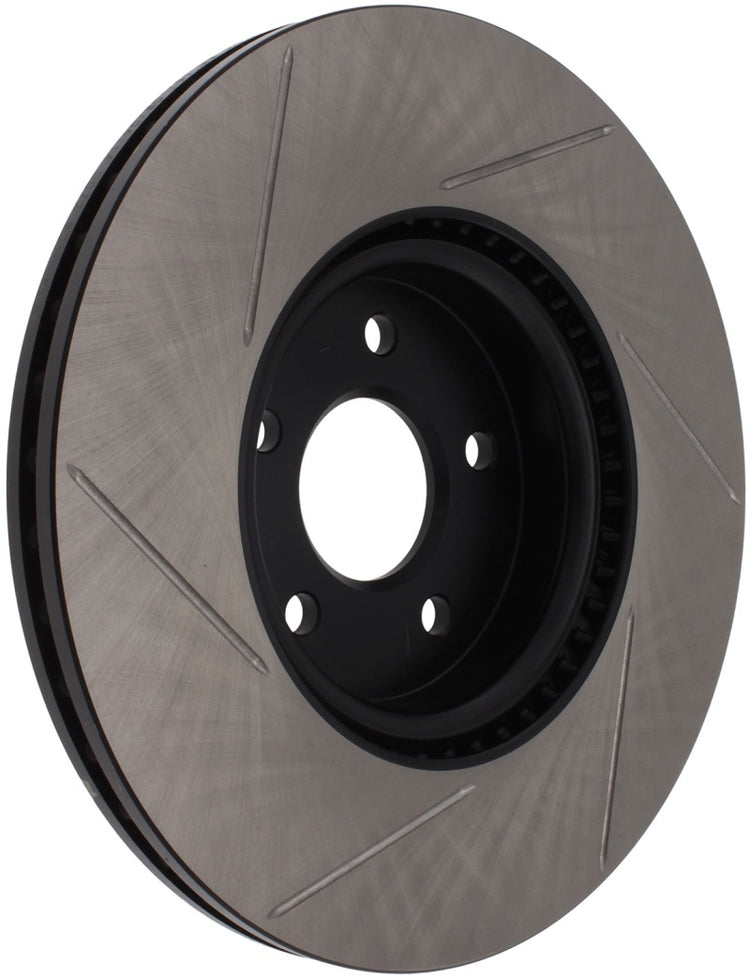 StopTech Slotted Sport Rotors are 1-piece direct replacement brake discs for factory brake systems and stock calipers that look great behind your wheels – and offer significantly improved braking performance. The unique slotting aids with heat and brake dust dispersal; prevents glazing of the pads; adds bite and improves wet and dry braking performance. Built to last; the black e-coating provides protection from corrosion and the high carbon metallurgy (in most applications) offers quieter operation; better crack resistance and increased performance.
