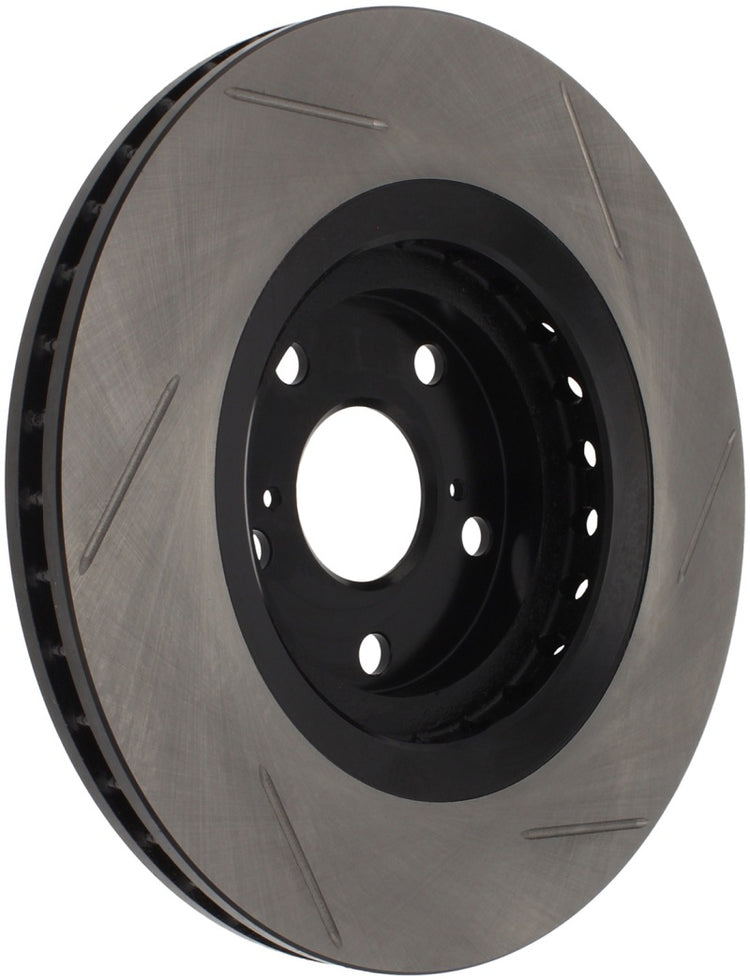 StopTech Slotted Sport Rotors are 1-piece direct replacement brake discs for factory brake systems and stock calipers that look great behind your wheels – and offer significantly improved braking performance. The unique slotting aids with heat and brake dust dispersal; prevents glazing of the pads; adds bite and improves wet and dry braking performance. Built to last; the black e-coating provides protection from corrosion and the high carbon metallurgy (in most applications) offers quieter operation; better crack resistance and increased performance.